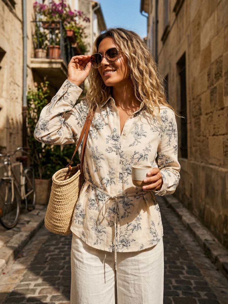 Сорочка з домішкою льону та зав'язkami на спині