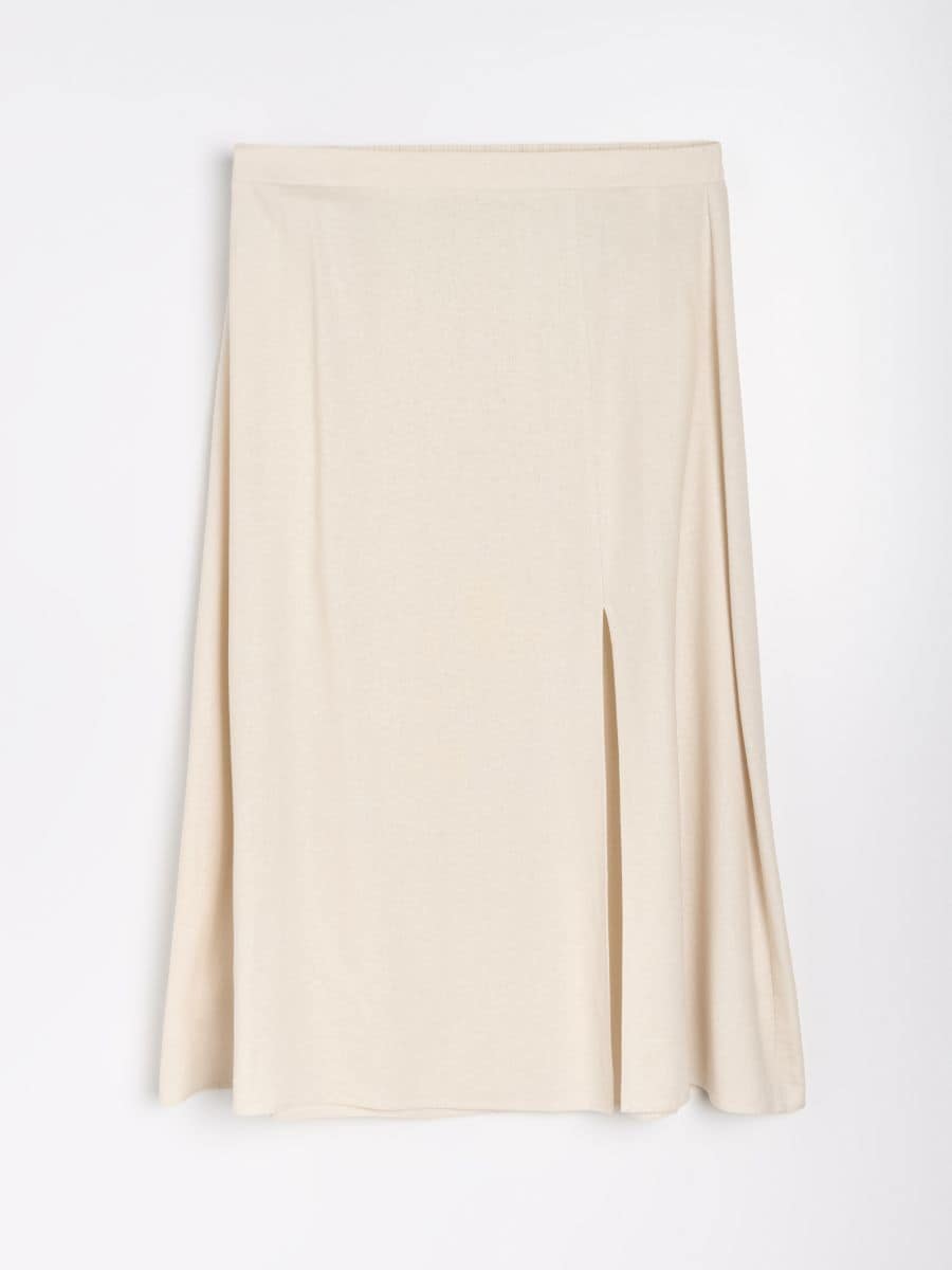 Спідниця міді з розрізом з віскозою та домішкою льону Plus size