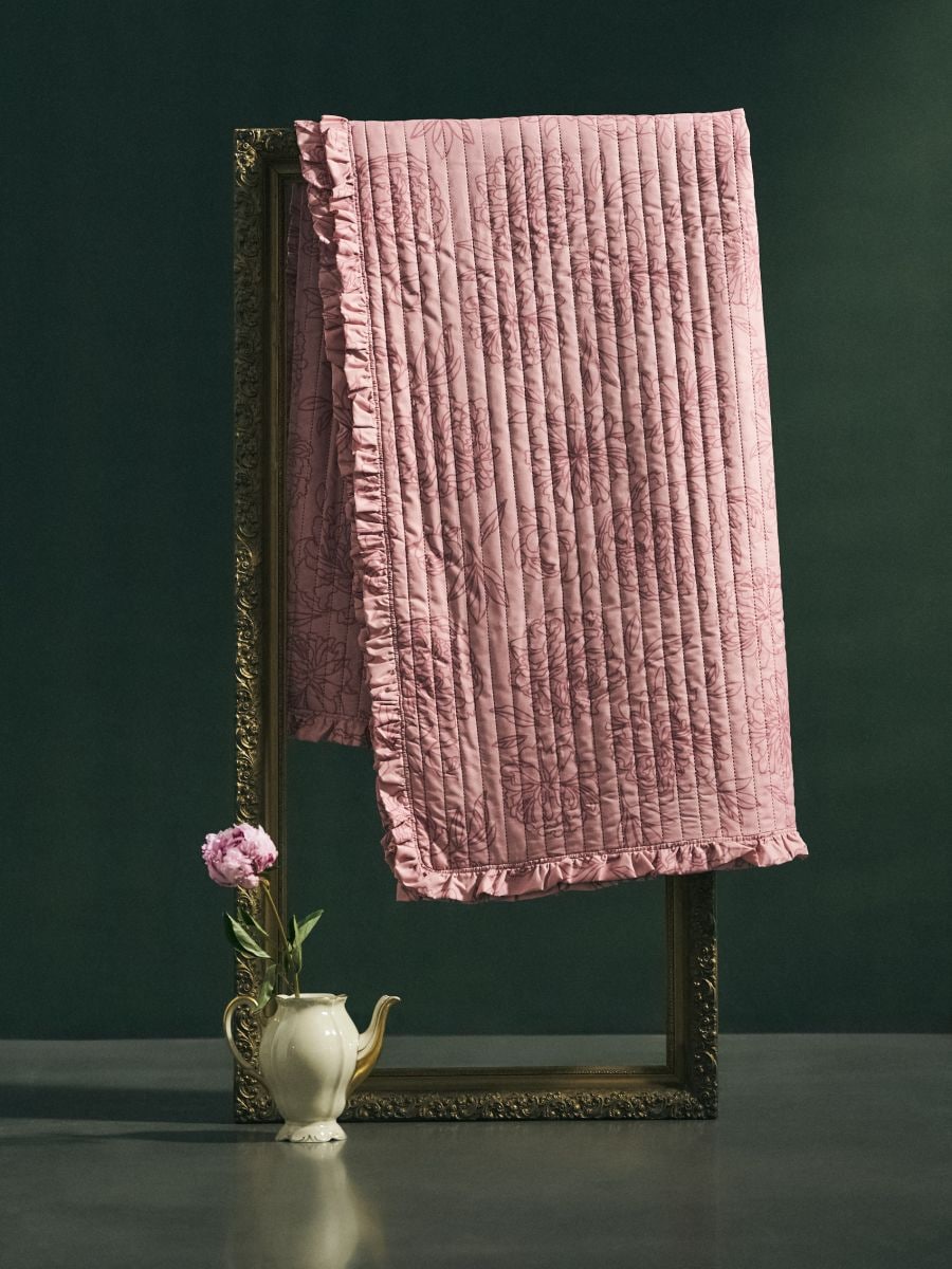 Стьобане покривало на ліжко з квітковим візерунком і оборкою