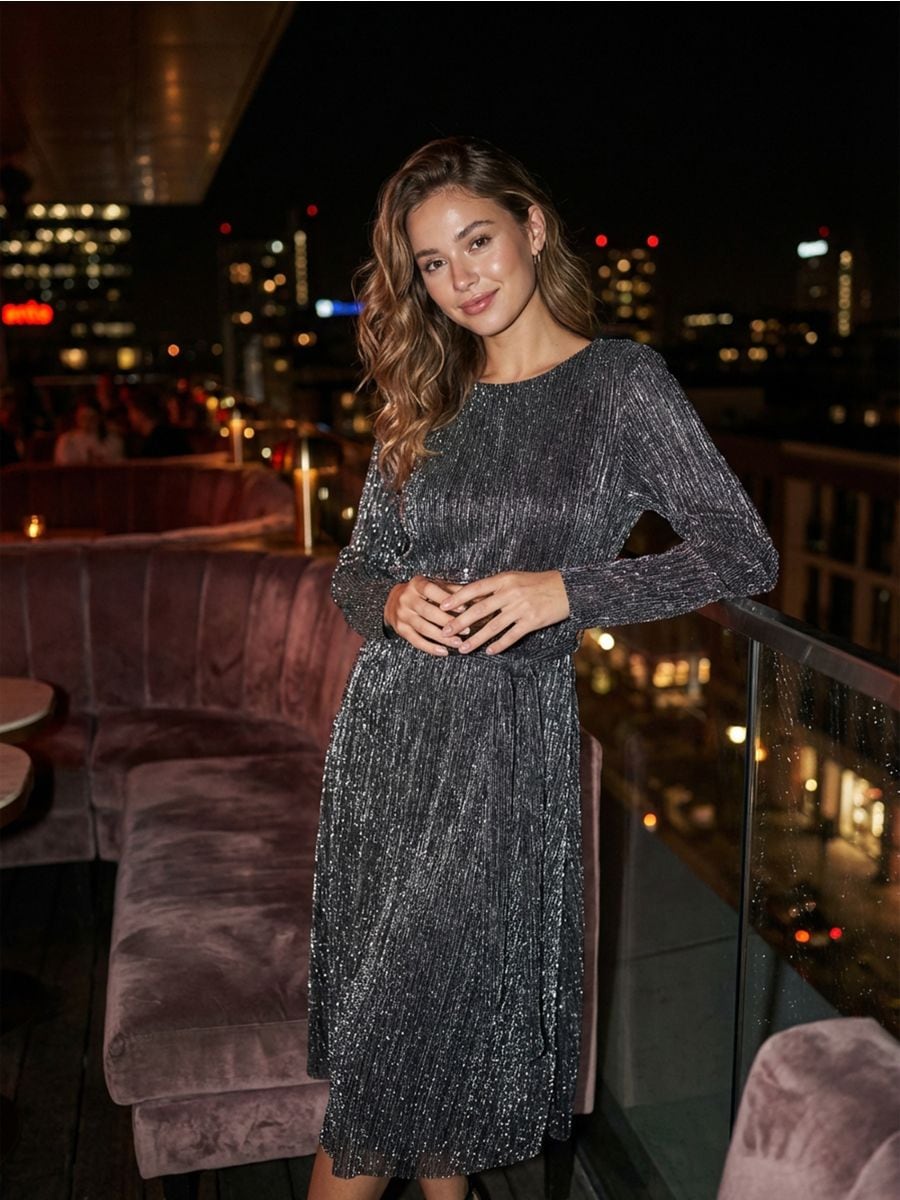 Сукня міді з мерехтливої тканини з поясом