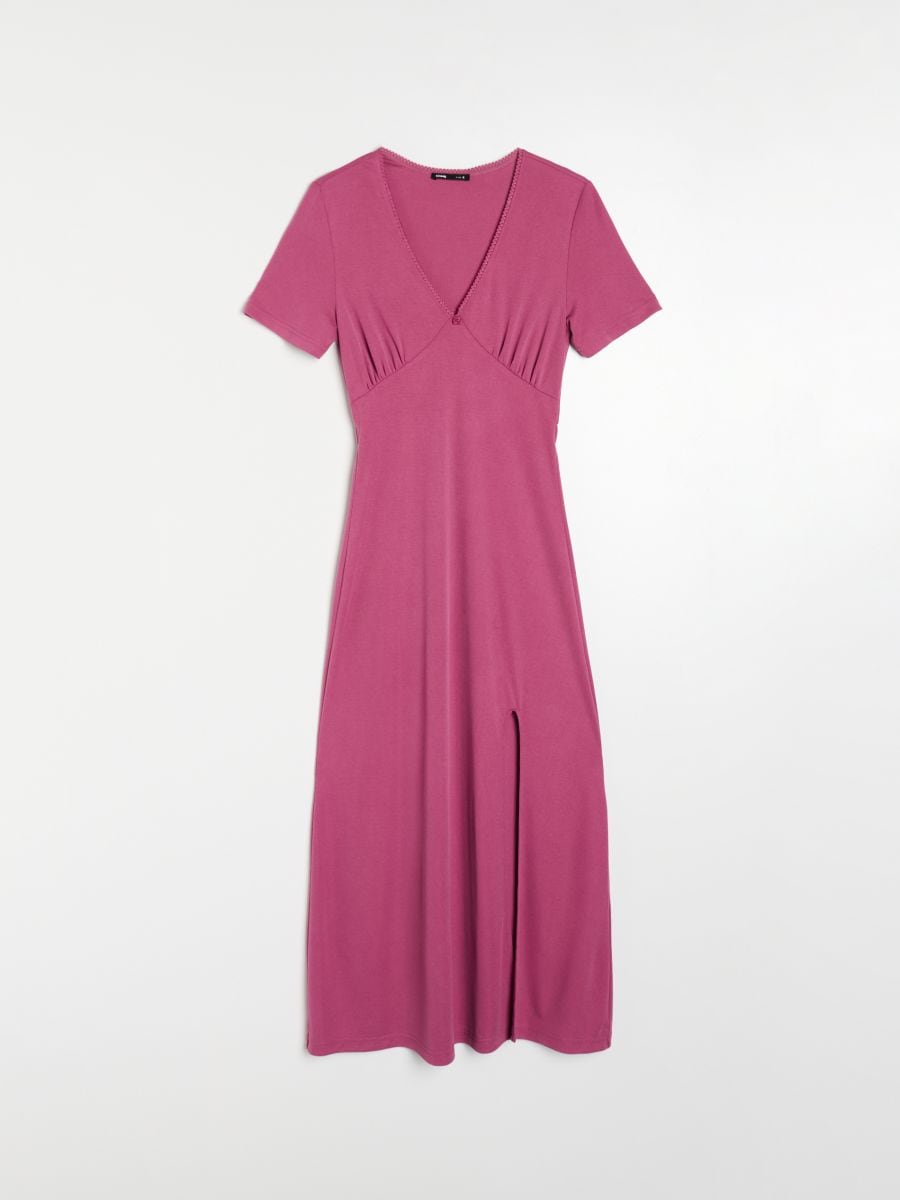 Сукня міді з модалу з V-подібним вирізом і коротким рукавом