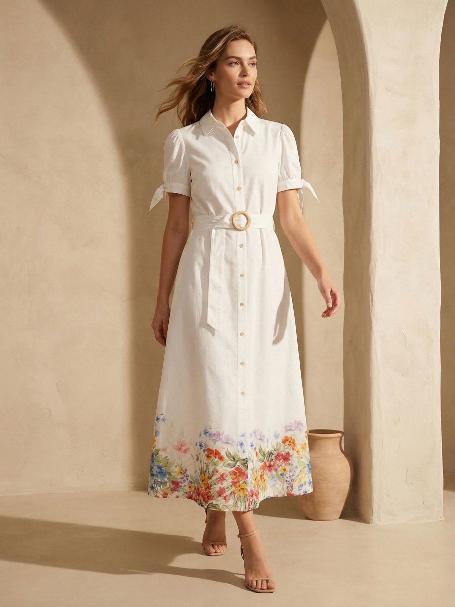 Сукня-сорочка міді з поясом і квітковим низом