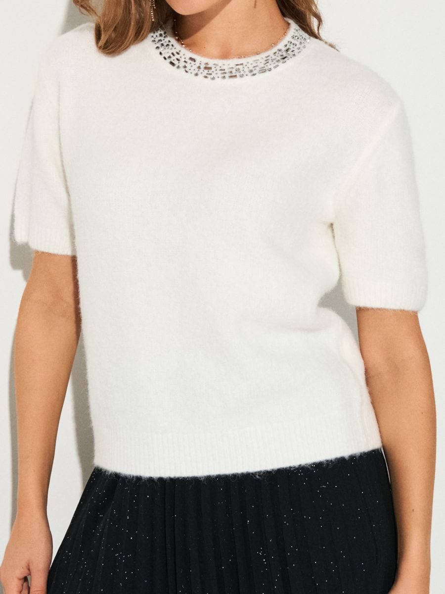 Светрова блуза з оздобленим вирізом і вовняною сумішшю