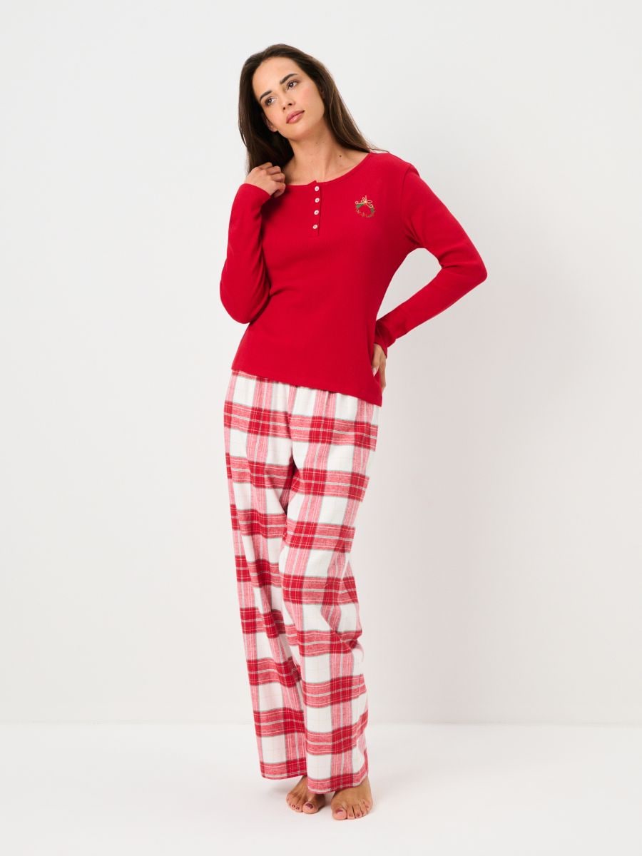 Святкова двокомплектна картата піжама з вишитим вінком