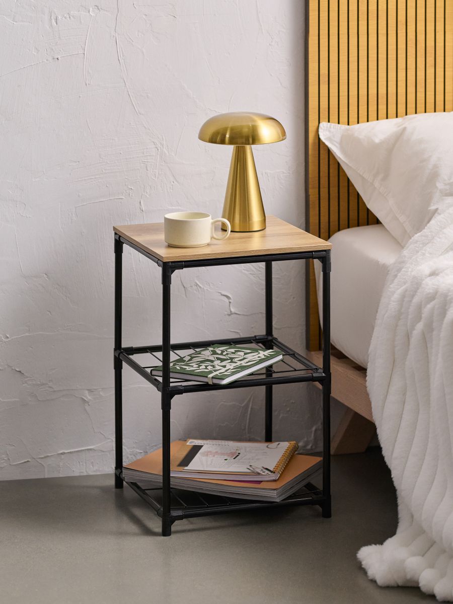 Трирівневий приліжковий столик з металевою рамою