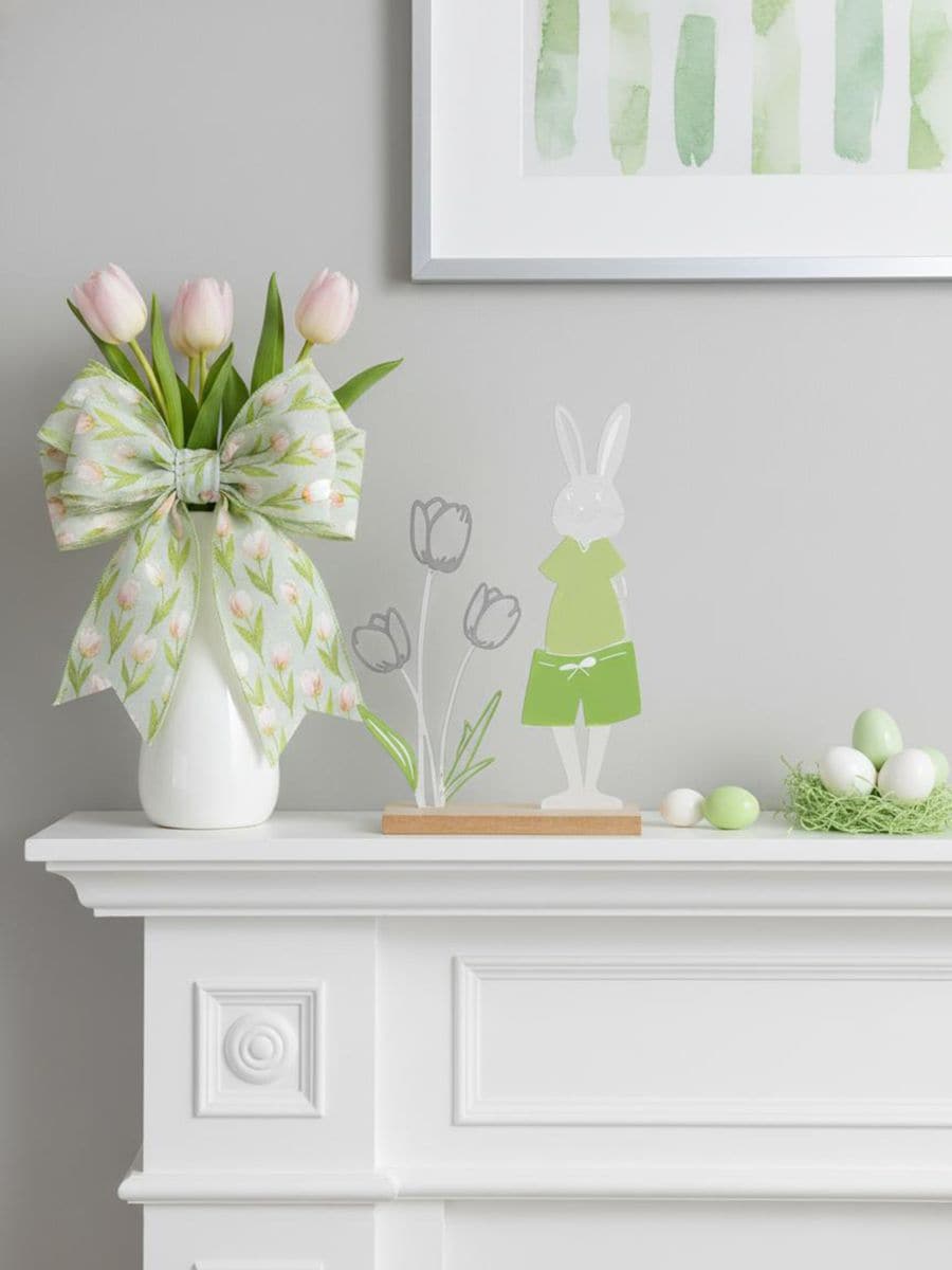 Великодня стояча прикраса із зайцем і тюльпанами